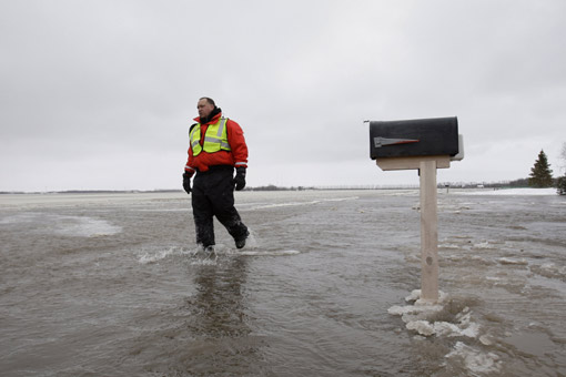 中新網(wǎng)3月26日電 美聯(lián)社消息,美國(guó)北達(dá)科他州近日春雪融化,造成河流水位猛漲,一些堤壩處于危險(xiǎn)之中。沿河公路及橋梁已經(jīng)全部關(guān)閉,春雪融化造成的冰凌還導(dǎo)致很多地方供電中斷。美國(guó)總統(tǒng)奧巴馬當(dāng)?shù)貢r(shí)間25日晚些時(shí)候命令當(dāng)?shù)厝娼鋫,避免出現(xiàn)人員傷亡。