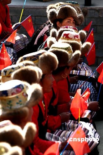 圖:拉薩市民參加慶;顒