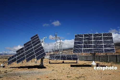 3月26日消息,隨著世界光伏產(chǎn)業(yè)的迅速發(fā)展,在空曠地區(qū)建設(shè)大規(guī)模光伏電站越來(lái)越受到人們的矚目。羊八井光伏電站就是我國(guó)第一座與高壓電網(wǎng)并聯(lián)運(yùn)行的光伏電站,發(fā)出的電能并入藏中電網(wǎng),供給拉薩市及周邊地區(qū)使用。經(jīng)過(guò)一年的實(shí)際運(yùn)行計(jì)量表明該電站年發(fā)電量為18.3萬(wàn)度左右,可以滿(mǎn)足約150戶(hù)居民的日常用電需求,每年可以節(jié)約75噸標(biāo)準(zhǔn)煤,減排二氧化碳275噸。羊八井100Kwp光伏示范電站在國(guó)內(nèi)首次采用直接并入10kv高壓電網(wǎng)的技術(shù)方案,在不影響原有電網(wǎng)的結(jié)構(gòu)和安全穩(wěn)定的情況下,為進(jìn)一步在西藏地區(qū)推廣太陽(yáng)能并網(wǎng)發(fā)電做出了示范。中新社發(fā) 扎西朗杰 攝