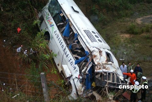 3月27日,一輛大型客車(chē)(車(chē)牌號(hào)為閩CY9537)從江西省萬(wàn)年開(kāi)往福建省泉州石獅方向,在南平長(zhǎng)(春)深(圳)高速2898公里處(延平區(qū)大橫鎮(zhèn)路段),從右側(cè)方向路邊溝翻至山溝,車(chē)輛嚴(yán)重毀壞。據(jù)初步了解,該車(chē)輛核載45人,車(chē)上駕乘人員25人,死亡18人,其中當(dāng)場(chǎng)死亡17人,在送往醫(yī)院途中死亡1人,死者中男性12名、女性6名。受傷7人分別送往南平第一醫(yī)院(1人)、人民醫(yī)院(1人)、九二醫(yī)院(5人),醫(yī)務(wù)人員正全力組織搶救,生命征較穩(wěn)定,暫無(wú)生命危險(xiǎn)。