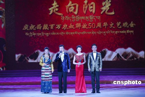 3月28日晚,“走向陽(yáng)光——慶祝西藏百萬(wàn)農(nóng)奴解放50周年文藝晚會(huì)”在北京舉行。晚會(huì)展現(xiàn)50年來(lái)西藏在中國(guó)共產(chǎn)黨領(lǐng)導(dǎo)下發(fā)生的翻天覆地的變化。當(dāng)日上午,西藏自治區(qū)在拉薩舉行慶祝大會(huì),慶祝西藏百萬(wàn)農(nóng)奴解放50周年。