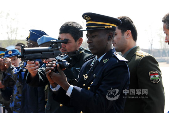 近日,在讀空軍指揮學(xué)院的36個友好國家的115名外籍留學(xué)學(xué)員,來到武警8643部隊參觀見學(xué)。武警官兵以高昂的士氣、扎實的作風(fēng)、過硬的素質(zhì)為外籍留學(xué)學(xué)員進行了現(xiàn)場處突課目演示和靜態(tài)裝備展示,讓他們近距離接觸和了解中國武警部隊的訓(xùn)練、工作和生活情況。這次參觀見學(xué)是空軍指揮學(xué)院外訓(xùn)系的一項教學(xué)觀摩活動,更是總參、總部為加深了解、促進交流、增進友誼安排的一項重要外事活動。在深入班排,參觀了官兵基礎(chǔ)生活、娛樂設(shè)施后,外籍留學(xué)學(xué)員紛紛表示,中國武警威武的形象和一流的工作標(biāo)準(zhǔn)給他們留下了深刻的印象。 (呂甫琴、朱尚軍 攝影)