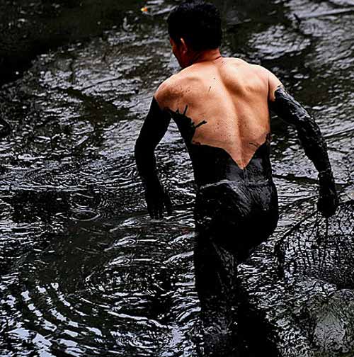 據(jù)華農(nóng)某施工隊的鄭師傅說,學(xué)校為了迎接校慶,計劃縮小池塘面積,并重新規(guī)劃周邊區(qū)域。約一周前就開始不分晝夜抽水,至昨日滿塘水被抽到塘底。昨日中午就開始有人下水捉魚,大頭魚、鯉魚、鯰魚……品種很多,每條最少五六斤,幾個小時內(nèi)已撈起近千斤魚。昨日下午3時許,曾有校衛(wèi)過來驅(qū)趕捕魚者。但校衛(wèi)一走,眾人又一窩蜂下水,之后再無人來干涉。