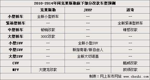 在新產(chǎn)品規(guī)劃方面,克萊斯勒表示將于5年的時(shí)間里投入230億美元,這些資金將用于產(chǎn)品開(kāi)發(fā)。在2010到2014的5年時(shí)間里,克萊斯勒將會(huì)發(fā)布21款新車(chē)型,其中2010年實(shí)現(xiàn)75%的車(chē)型改款或是推出新產(chǎn)品,直到2014年克萊斯勒的全部產(chǎn)品都將完成更新?lián)Q代。