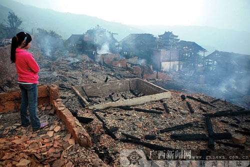 5月10日晚,廣西柳州三江侗族自治縣獨(dú)峒鄉(xiāng)知了村知了屯發(fā)生火災(zāi),68戶人家的房屋被燒毀,另有69戶房屋因救火被破拆。據(jù)當(dāng)?shù)孛裾块T初步統(tǒng)計(jì),直接經(jīng)濟(jì)損失達(dá)130多萬元。