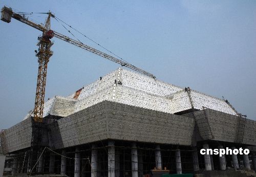 2009年5月16日,河南省安陽(yáng)市,建設(shè)中的中國(guó)文字博物館。 中國(guó)文字博物館自2007年在河南省安陽(yáng)市正式開(kāi)工建設(shè)以來(lái),在中央、省、市以及社會(huì)各界的支持下,日前各項(xiàng)建設(shè)工作正在有條不紊地向前推進(jìn),2009年年底有望開(kāi)館。據(jù)悉,建成后的中國(guó)文字博物館由字坊、廣場(chǎng)、主體館、倉(cāng)頡館、科普館、研究中心、交流中心等建筑組成,將是世界上第一家以文字為主題的國(guó)家級(jí)專業(yè)博物館。中新社發(fā) 常中正 攝