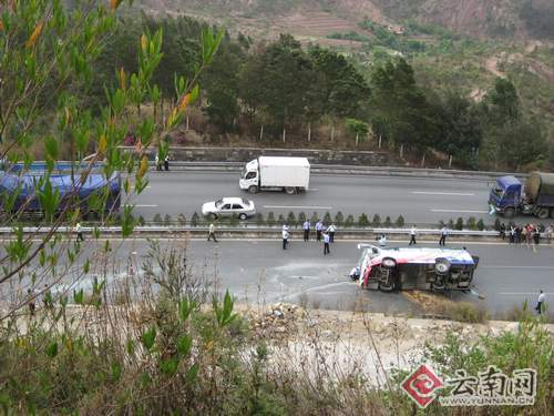 據(jù)了解,側(cè)翻的云L18477中型客車是大理交通運輸集團(tuán)公司的,該車核載30人,事發(fā)時載客29人,是從下關(guān)駛往昆明的。事故原因正在進(jìn)一步的調(diào)查當(dāng)中。下午5時,封閉了4個多小時的安楚高速公路開始通車。