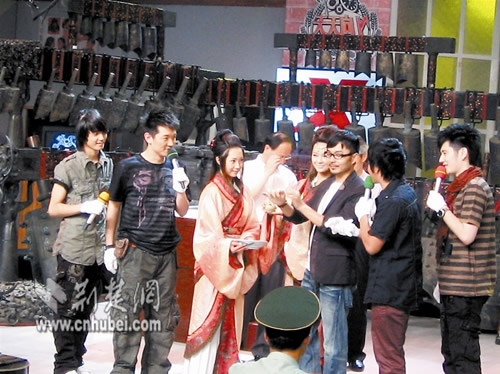 19日,在湖北出土的六件重量級(jí)文物——越王勾踐劍、曾侯乙編鐘以及雙耳金杯等,一齊亮相湖南衛(wèi)視的熱播欄目《天天向上》的錄播現(xiàn)場(chǎng)。汪涵、歐弟、田源、錢(qián)楓和韓國(guó)明星小五,以其一貫的幽默、活潑的主持風(fēng)格,把沉重靜謐的文物活靈活現(xiàn)地推介給了電視觀眾。