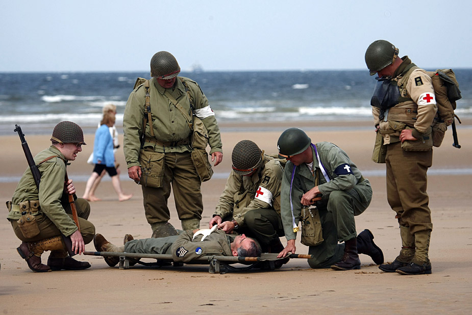美英法等國士兵穿上二戰(zhàn)時期軍服在法國諾曼底海灘舉行“登陸戰(zhàn)”紀念諾曼底登陸65周年。