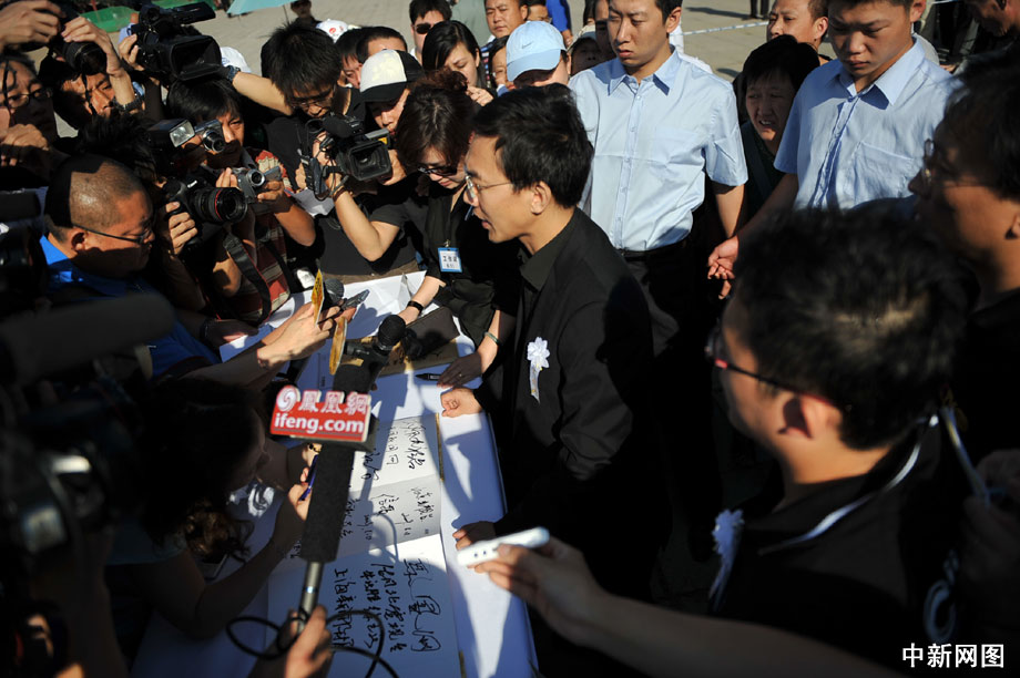 著名播音員羅京遺體告別儀式11日在北京八寶山殯儀館舉行,在京各界人士紛紛自發(fā)趕到殯儀館送羅京最后一程。>>更多現(xiàn)場圖片