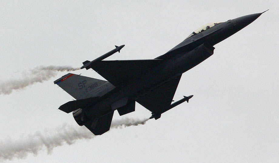圖為美國(guó)F-16戰(zhàn)斗機(jī)進(jìn)行飛行表演。