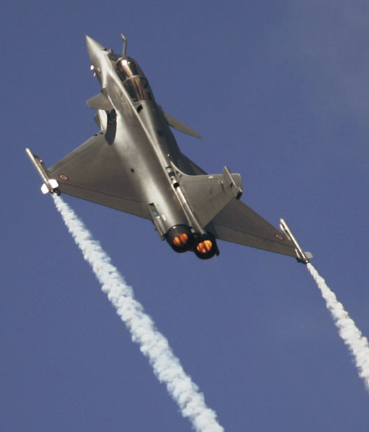圖為法國(guó)陣風(fēng)戰(zhàn)斗機(jī)進(jìn)行飛行表演。