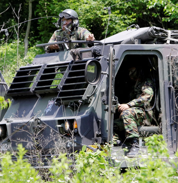 2009年6月18日,韓國陸軍在江原道江陵市海岸一帶舉行防范入侵的海岸哨所軍事演習(xí)。