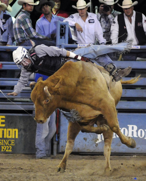 6月26日,在美國(guó)內(nèi)華達(dá)州舉行了一場(chǎng)驚險(xiǎn)刺激的騎牛大賽,各路馴牛勇士各顯身手,希望能夠征服這些狂野的莽牛。