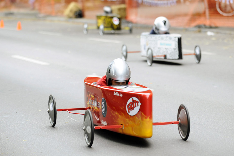 6月28日,德國(guó)柏林的德比郡舉行了第50屆“肥皂盒”競(jìng)速賽車,該賽車沒有動(dòng)力裝置,參賽者親手打造的“賽車”更使比賽妙趣橫生。