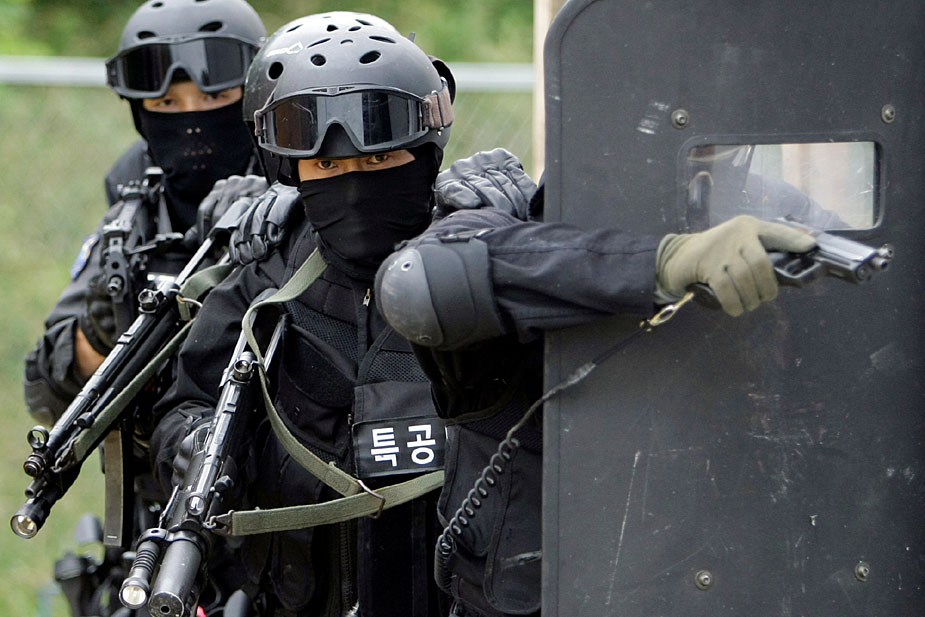 7月2日,韓國特警在韓國首都首爾市舉行了反恐演習(xí)。韓國特警先后表演了一系列高難度動作,令人目不暇接。
