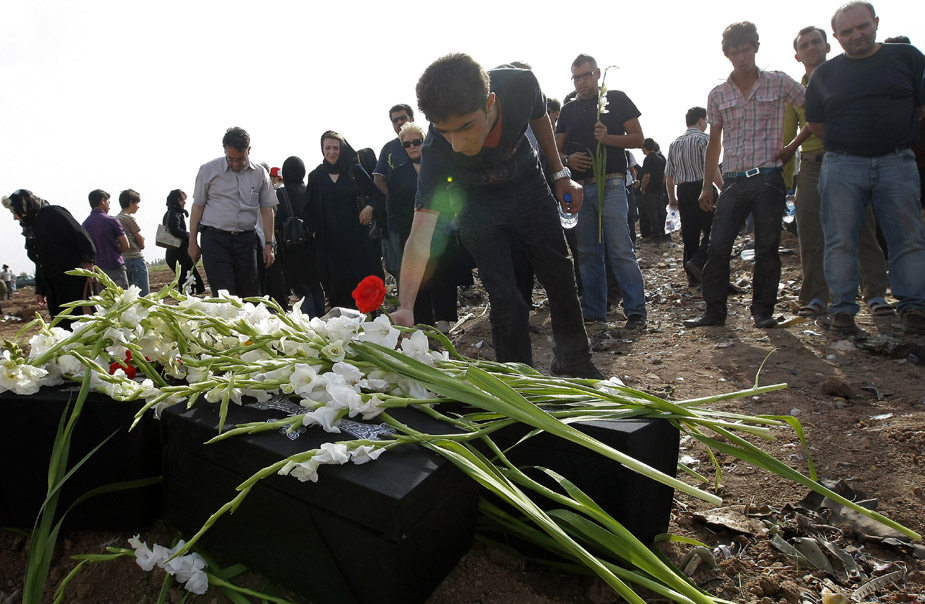 7月16日,部分遇難者的親屬在伊朗加茲溫附近的墜機(jī)現(xiàn)場(chǎng)悼念親人。一架伊朗客機(jī)15日在加茲溫附近墜毀,機(jī)上168人全部遇難。更多報(bào)道