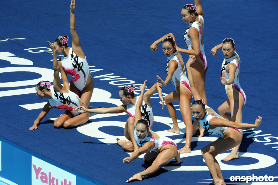 中國花游姑娘功夫動(dòng)作亮相羅馬世錦賽。中新社發(fā) 廖攀 攝