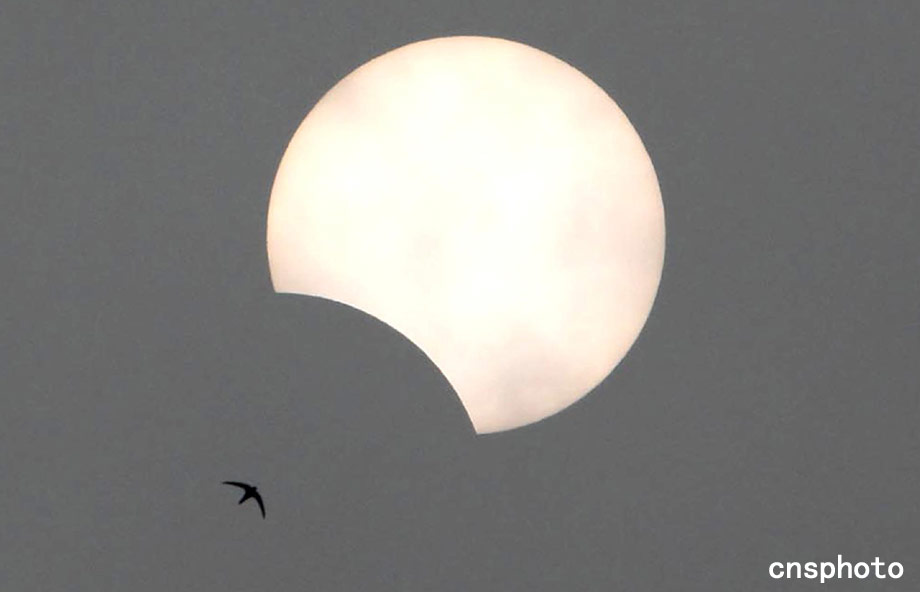 7月22日上午10點(diǎn)28分,北京上空出現(xiàn)的燕子爭(zhēng)相追逐日偏食奇觀(guān)。