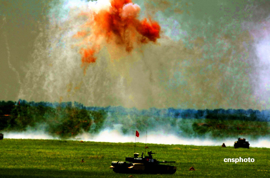 中國(guó)、俄羅斯兩軍總參謀長(zhǎng),7月23日上午到沈陽(yáng)軍區(qū)洮南合同戰(zhàn)術(shù)訓(xùn)練基地,觀看“和平使命2009”聯(lián)合反恐軍事演習(xí)。雙方以陸軍和空軍為主,中方參演部隊(duì)包括1個(gè)陸軍戰(zhàn)斗群和1個(gè)空軍戰(zhàn)斗群。俄方參演兵力包括1個(gè)陸軍加強(qiáng)摩步營(yíng)、1個(gè)空降突擊連和部分空軍兵力,雙方投入兵力兩千多人。中新社發(fā) 宋吉河 攝