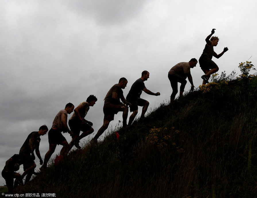 7月26日,硬漢挑戰(zhàn)賽在英國的伍爾弗漢普頓市舉行。這種以恐怖障礙著稱的比賽規(guī)則很簡單,勇士們通過規(guī)定的路程,誰先到達終點就是冠軍!參賽者需要在火焰中奔跑,穿越齊腰深的沼澤地,在帶刀片的鐵絲網下爬行,躍湖中,屏住呼吸穿越水下泥潭……