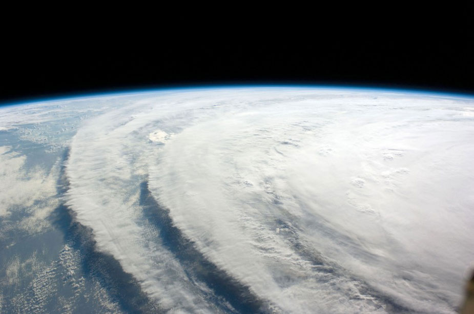 英國媒體近日公布了一組衛(wèi)星上拍攝到的地球自然景觀的照片,領(lǐng)觀者頗感震撼。圖為從衛(wèi)星上拍到的颶風產(chǎn)生的氣流。