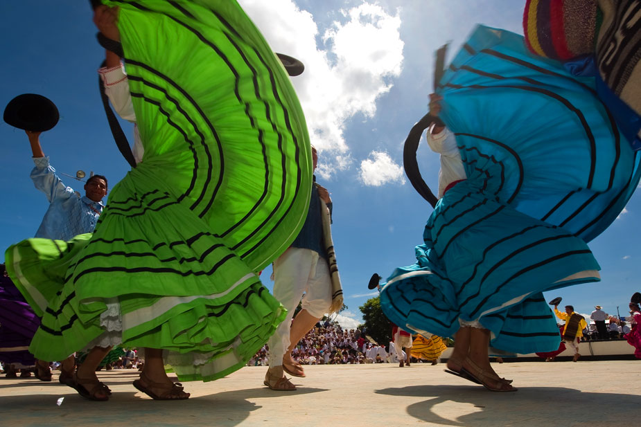 每年7月的最后兩個(gè)星期一是瓦哈卡聞名世界的“蓋拉蓋查節(jié)(Guelaguetza)”,來自瓦哈卡州各地、各具特色的印第安部落推選出具有代表性的舞蹈隊(duì),在瓦哈卡城外的弗爾丁山上載歌載舞,同時(shí)也為前來觀看的世界各地游客獻(xiàn)上本部落的土特產(chǎn)。