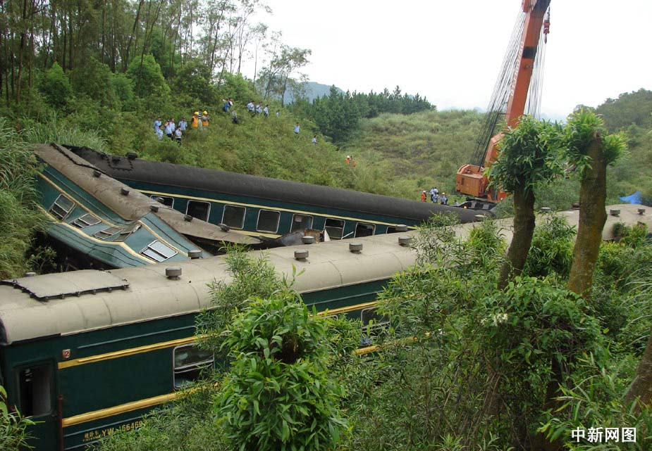 29日4時,由襄樊開往湛江的1473次旅客列車運行至焦柳線廣西境內,因連日持續(xù)強降雨造成山體崩塌掩埋線路,列車機車及機后1-4位車輛脫軌,造成4名旅客死亡,50余名旅客受傷。