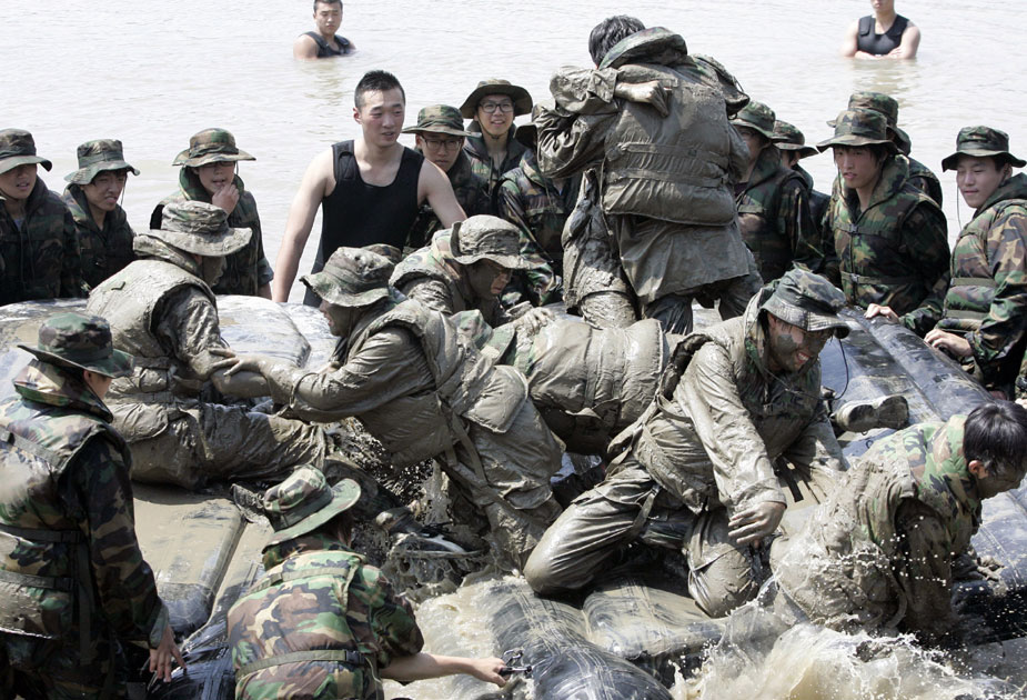 當(dāng)?shù)貢r(shí)間7月30日,在首爾的美軍基地參加軍訓(xùn)夏令營(yíng)的韓國(guó)數(shù)百名學(xué)生來(lái)到金浦進(jìn)行了泥地訓(xùn)練,場(chǎng)面十分激烈甚至殘酷。