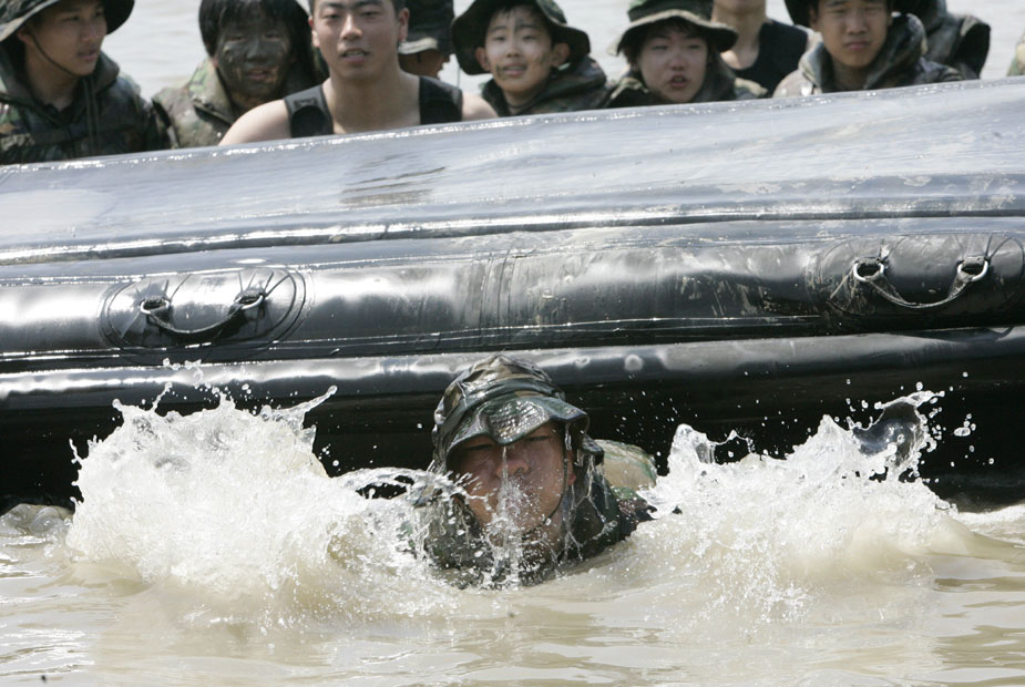 當(dāng)?shù)貢r(shí)間7月30日,在首爾的美軍基地參加軍訓(xùn)夏令營(yíng)的韓國(guó)數(shù)百名學(xué)生來(lái)到金浦進(jìn)行了泥地訓(xùn)練,場(chǎng)面十分激烈甚至殘酷。