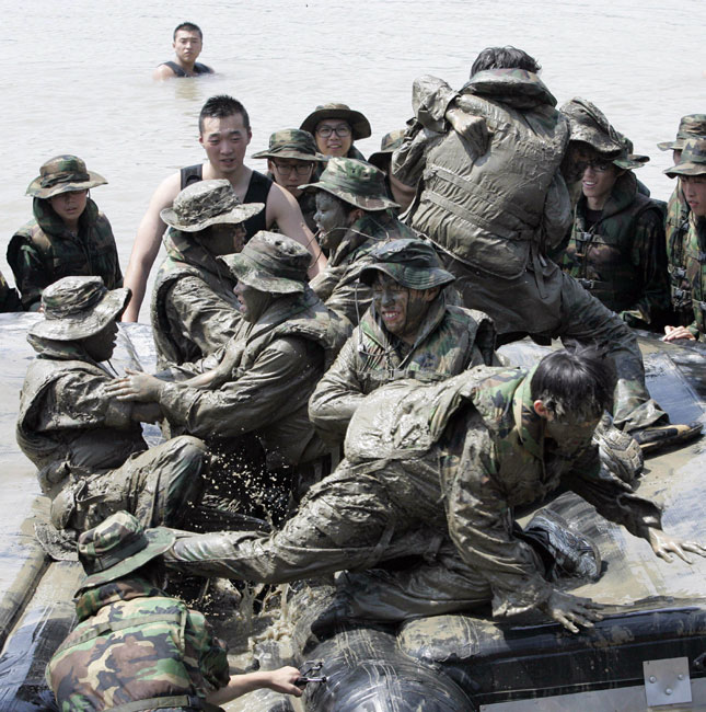 當(dāng)?shù)貢r(shí)間7月30日,在首爾的美軍基地參加軍訓(xùn)夏令營(yíng)的韓國(guó)數(shù)百名學(xué)生來(lái)到金浦進(jìn)行了泥地訓(xùn)練,場(chǎng)面十分激烈甚至殘酷。