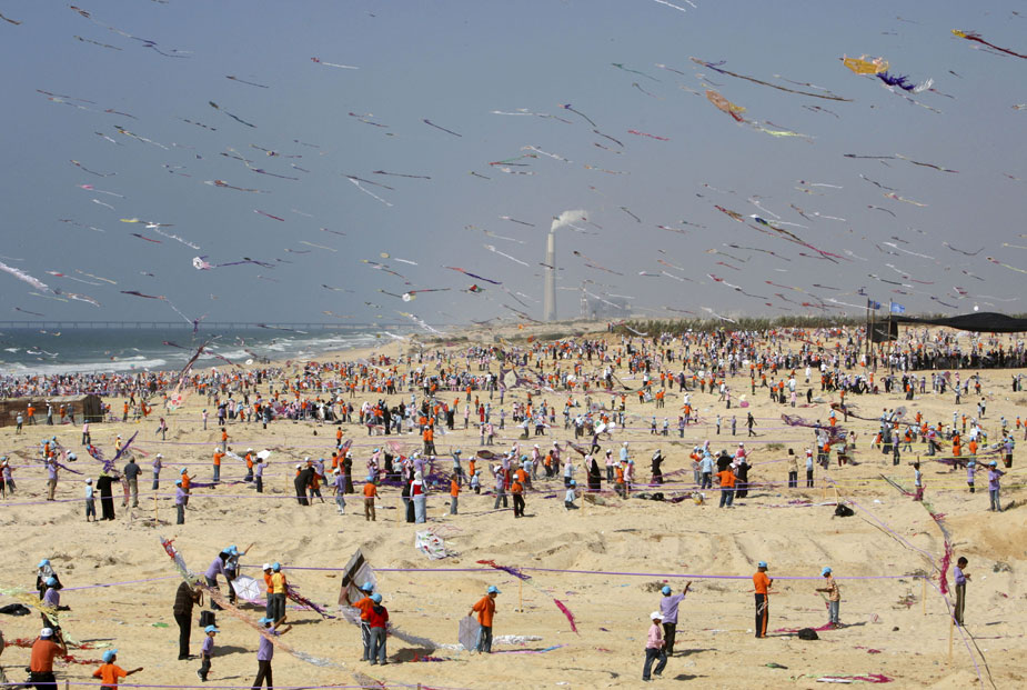 7月30日,加沙地帶的6000名巴勒斯坦兒童共同在加沙北部的海灘上放飛了3000多只五顏六色的風(fēng)箏,打破了同時放飛最多只風(fēng)箏的吉尼斯世界紀錄。