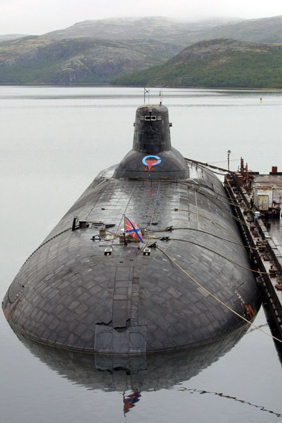 這種水下武器平臺(tái)的技術(shù)數(shù)據(jù)是令人震驚的。它擁有鈦金屬制造的外殼,全長(zhǎng)173米,寬24.6米,高42.7米,相當(dāng)于一座10層大樓,水面航行時(shí)吃水深13米,水下排水量可以達(dá)到2.65萬噸,水面航速達(dá)到每小時(shí)30公里,潛航速度可以達(dá)到每小時(shí)50公里,最大下潛深度500米,持續(xù)潛航時(shí)間達(dá)到120天。在冷戰(zhàn)期間,六艘“臺(tái)風(fēng)”級(jí)潛艇就位于距離挪威邊境50公里的Zapadnaya Litsa海軍基地。