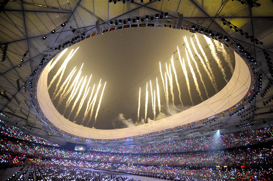 鳥巢夜未眠——從中軸線上的“腳印”煙花,到千缶齊鳴倒數(shù),從夢幻五環(huán)驚艷“鳥巢”,到“夸父逐日”點(diǎn)燃祥云,整個(gè)北京奧運(yùn)開幕式帶給觀眾一波又一波的感嘆。