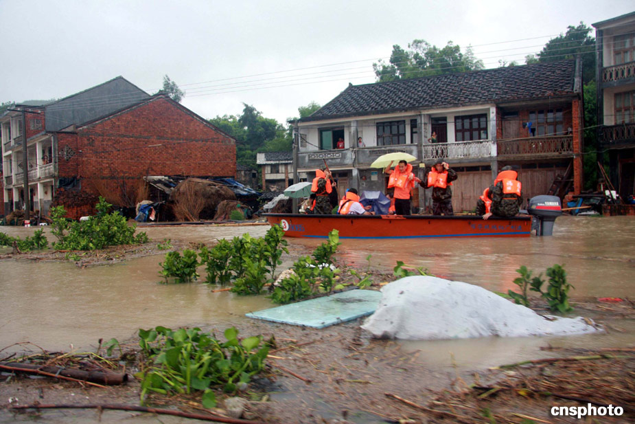 八月九日,武警官兵進(jìn)入福鼎南墘村搶救受災(zāi)民眾。受臺風(fēng)“莫拉克”強(qiáng)降雨的影響,福建寧德福鼎南墘村大面積受淹,大水同時(shí)也將通往該村的道路全部淹沒,致使該村猶如“孤島”,該村近三百名村民被困。中新社發(fā) 王東明 攝