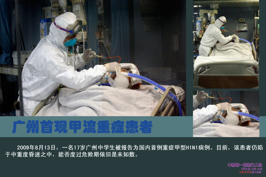 中新網(wǎng)本周熱點人物之廣州甲流患者——一名17歲廣州中學(xué)生報告為國內(nèi)首例重癥甲型H1N1病例,目前在廣醫(yī)一院廣州呼吸病研究所ICU救治重癥監(jiān)護。昨日記者在ICU外看到正接受重癥監(jiān)護的這名特殊病例,他陷于中重度昏迷,能否度過危險期依舊是未知數(shù)。