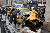美國(guó)出租車(chē)撞上地鐵站