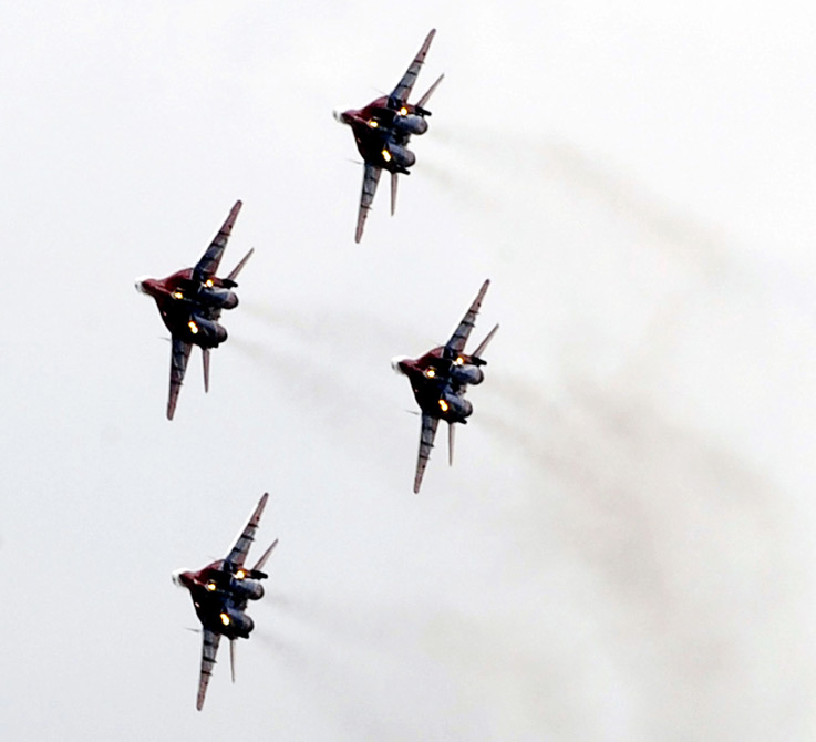 8月18日,2009莫斯科國際航空航天展(MAKS-2009)開幕。圖為精彩的飛行表演。