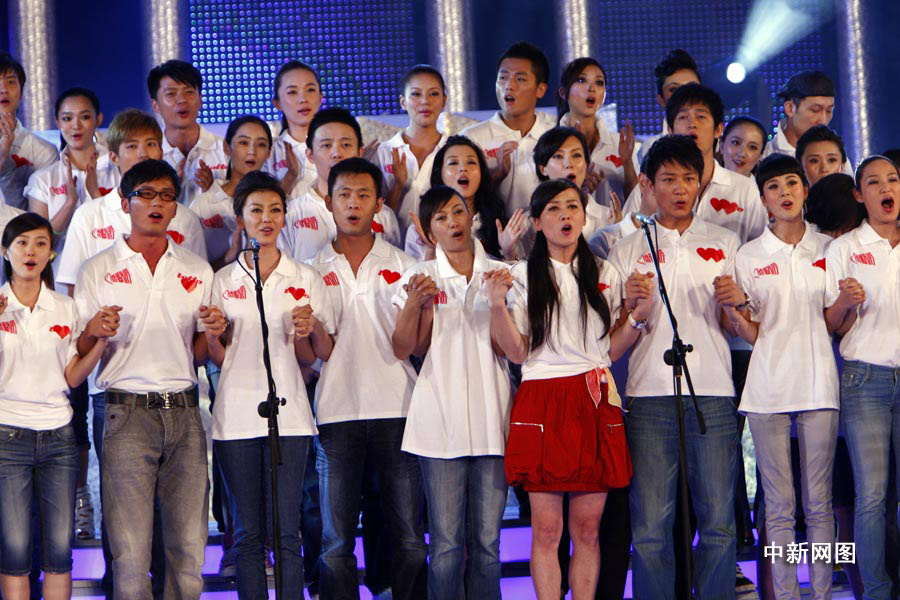 “跨越海峽的愛(ài)心”——大陸同胞援助臺(tái)灣“莫拉克”臺(tái)風(fēng)受災(zāi)同胞賑災(zāi)晚會(huì)在北京舉行,眾多文體界明星在現(xiàn)場(chǎng)亮相。中新社發(fā) 杜洋 攝