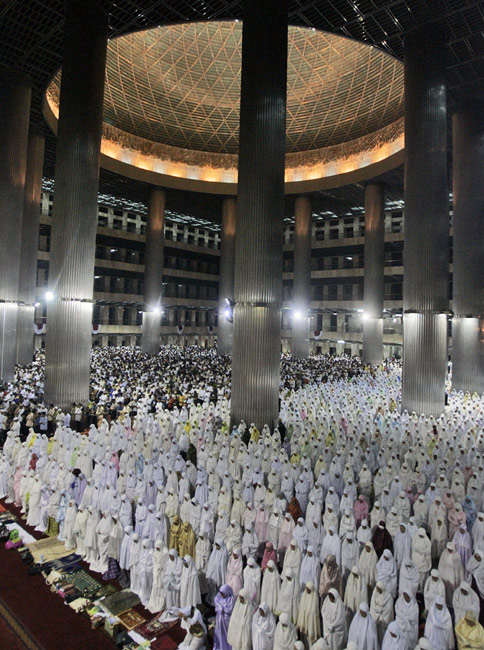 8月22日,世界各地的穆斯林迎來了傳統(tǒng)的齋月。圖為8月21日,印尼穆斯林在雅加達一所清真寺內(nèi)祈禱,迎接齋月的到來。