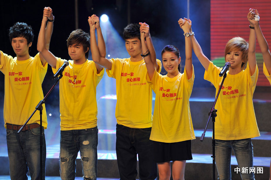 8月22日晚,北京舉行“兩岸一家 愛心無限”為臺灣同胞賑災(zāi)義演晚會,大陸和臺灣演藝界明星登臺為臺灣災(zāi)區(qū)同胞共獻愛心,晚會臨近結(jié)束時共收到各界捐款3000多萬元。中新網(wǎng)記者 金碩 攝