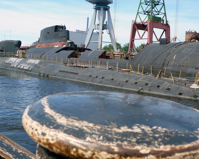 被拆解的核潛艇屬于臺(tái)風(fēng)級(jí)戰(zhàn)略核潛艇,編號(hào)TK13。2008年7月,該艇被運(yùn)抵俄羅斯北部北德文斯克的茲韋茲多奇卡(Zvezdochka)船廠。(環(huán)球網(wǎng))