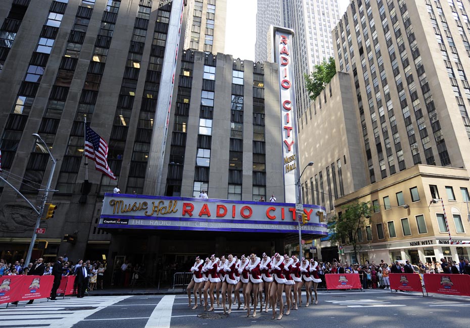8月25日,美國(guó)“火箭女郎”舞蹈團(tuán)身著圣誕裝在無(wú)線電城音樂廳(Radio City Music Hall)前演出。來(lái)源:中國(guó)新聞網(wǎng)