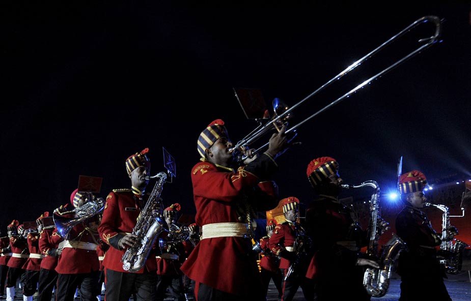9月4日晚,俄羅斯莫斯科紅場舉行了俄羅斯國際軍樂節(jié)開幕前夕的總彩排。首屆俄羅斯國際軍樂節(jié)將于9月5日至10日在莫斯科紅場舉行。圖為印度軍樂團正在進行彩排。