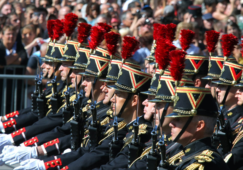 2009年7月14日,法國(guó)在巴黎香榭麗舍大道上舉行傳統(tǒng)閱兵儀式,慶祝該國(guó)國(guó)慶節(jié),圖為法國(guó)共和國(guó)衛(wèi)隊(duì)接受檢閱。