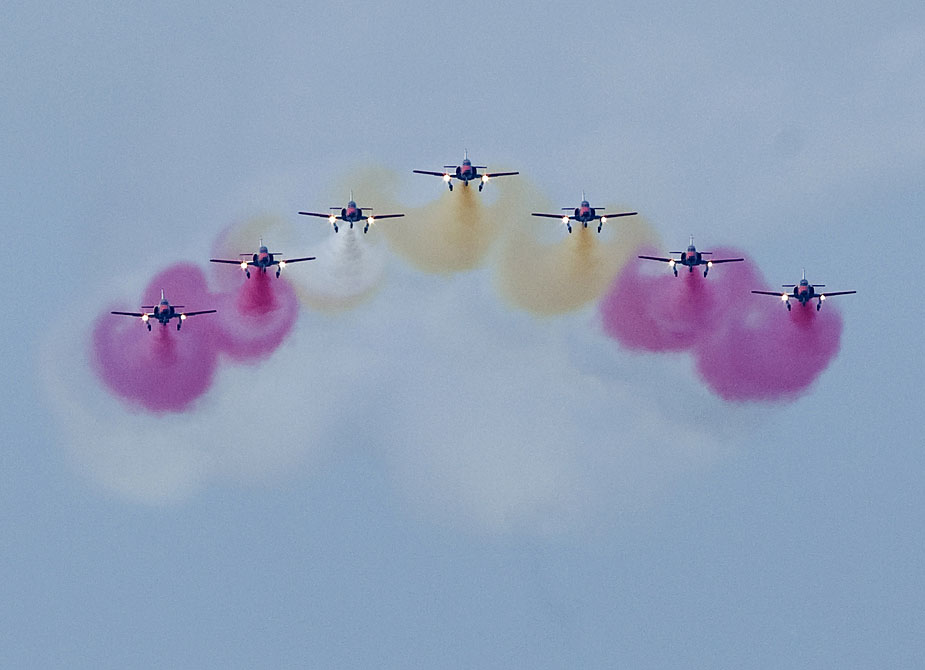 9月13日,西班牙南部加地斯地區(qū)舉行了一場別開生面的飛行表演。這次飛行表演使用的是二戰(zhàn)時期的老式飛機(jī)。圖片來源:中國新聞網(wǎng)