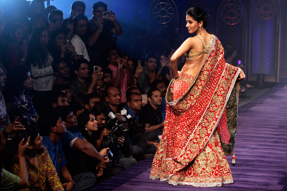 9月13日,主題名為“地球時(shí)裝”的時(shí)裝周在印度加爾各答開幕,時(shí)裝周上模特們展示了設(shè)計(jì)師馬尼什·馬爾霍特拉的作品。來源:中國新聞網(wǎng)
