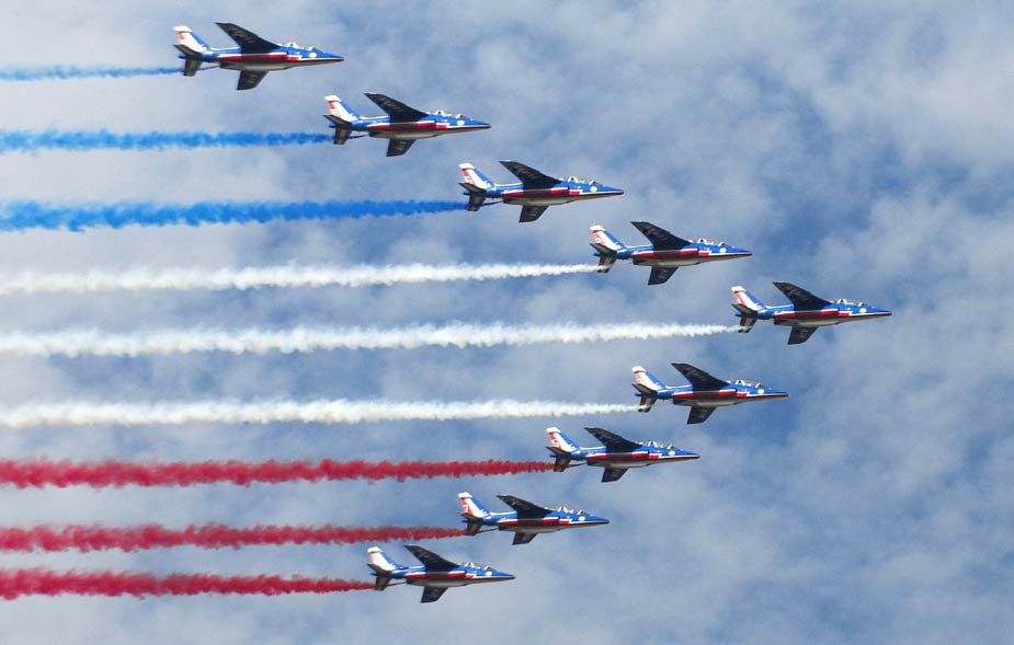 9月19日,智利首都圣地亞哥舉行了盛大閱兵式慶祝獨立199周年。圖為法國特技飛行表演隊“法蘭西巡邏兵”在閱兵儀式上進(jìn)行表演。