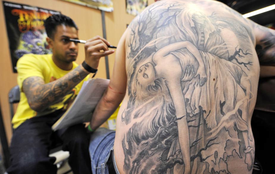 法國巴黎9月20日舉行“紋身藝術(shù)節(jié)”,吸引了成百上千紋身藝術(shù)大師到場獻(xiàn)藝。