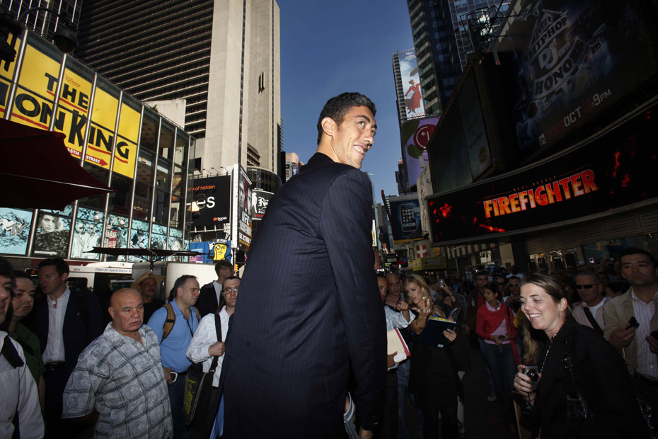 9月21日,身高2.465米的土耳其人柯森在美國(guó)紐約拿到了“世界第一高人”的吉尼斯世界紀(jì)錄證書。這項(xiàng)紀(jì)錄的上一位保持者是身高2.36米中國(guó)人鮑喜順。來(lái)源:中國(guó)新聞網(wǎng)